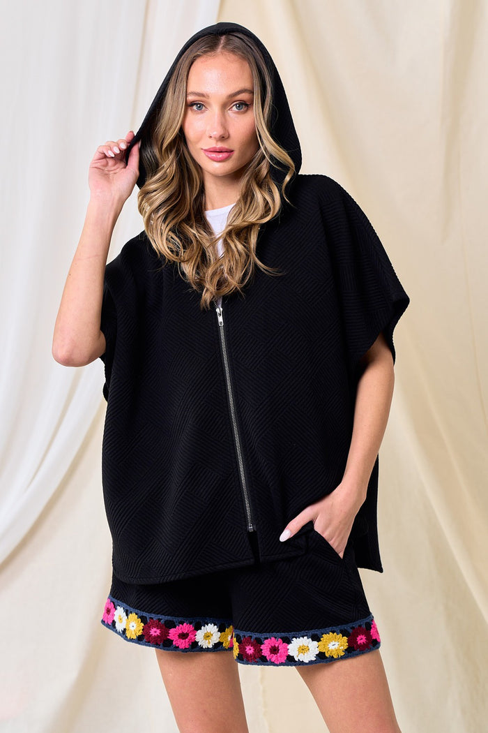 Textured Hooded Vest And Cropped Wide Pants Set Olive & Black