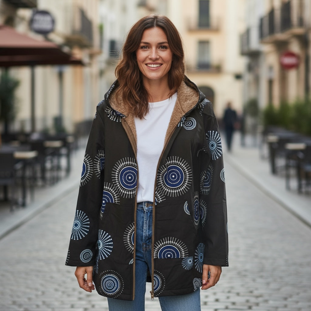Elevate your layering game with this vintage-inspired hooded jacket, where timeless design meets modern comfort. The delicate floral print adds understated elegance, while the soft fleece lining provides warmth without bulk. Crafted in a refined black palette, this piece transitions seamlessly from casual outings to polished occasions. The lightweight construction ensures breathability, making it an ideal choice for transitional seasons. A sophisticated staple that combines vintage charm with contemporary wearability.